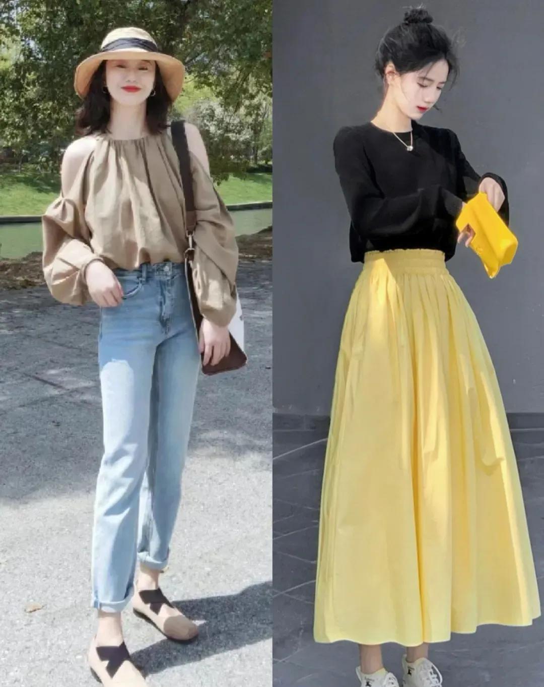 如果你對一些稍亮的顏色還是拿不定主意,擔心自己駕馭不了,也可以把亮色的單品放在下半身,上半身用耐看的中性色來裝飾。過多。時尚感和氣質。黑色上衣簡潔大方,穩重低調。搭配黃色A字裙。精致大方,優雅大方。