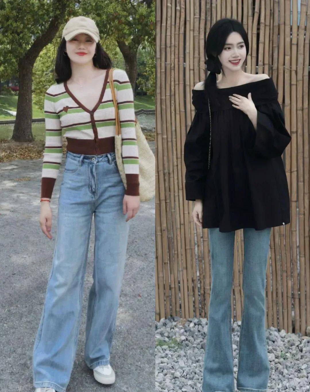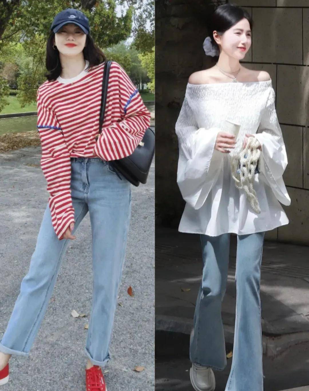 在穿衣的時候,我們感覺自己清楚了自己的優點和缺點,這樣才能更好的揚長避短。如果頸肩部的線條和鎖骨的線條都非常突出的話,那麼我們可以嘗試一些一字肩的款式。比如黑色的一字肩搭配下面的牛仔褲,時髦又時尚,精致又迷人,頸肩線條經過翻新,更加精致迷人,女人味十足,