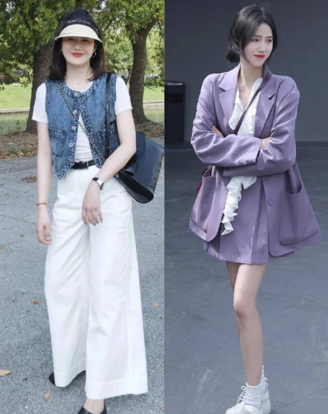 作為職業女性,西裝和襯衫的使用較多,尤其是選擇稍寬的材質,修身氣質,才氣知性,利落大方,淺紫色的西裝外套,穩重大方,干練知性,搭配面料。淺藍色牛仔褲之后,更加休閑簡約,清爽溫柔。不僅有職場霸氣的才華,還有溫柔甜美的氣質。
