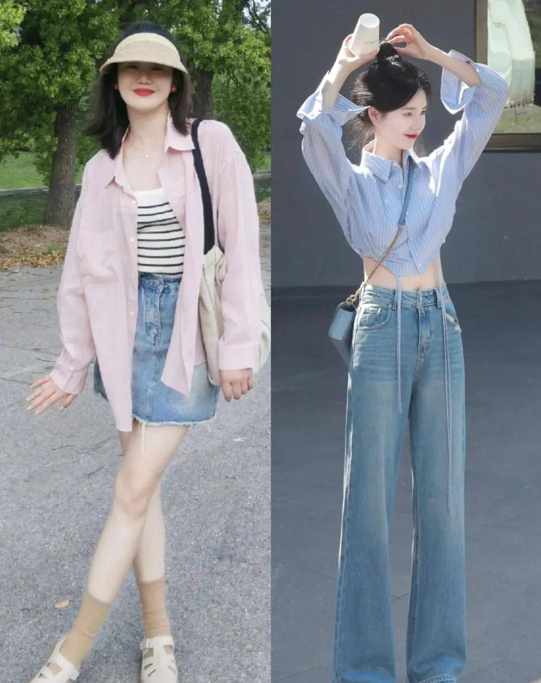 襯衫與西裝褲的搭配經典又優雅,干練又容易犯錯。當我們換上這件牛仔襯衫后,氣質更加柔和,少了嚴謹嚴肅,多了一份休閑簡約,溫柔大方,再加上米色西裝褲,靈動靈動,穩重優雅,讓你輕松達到美麗新高度,簡約干凈,清爽時尚,輕松展現職場女性的利落與溫柔。