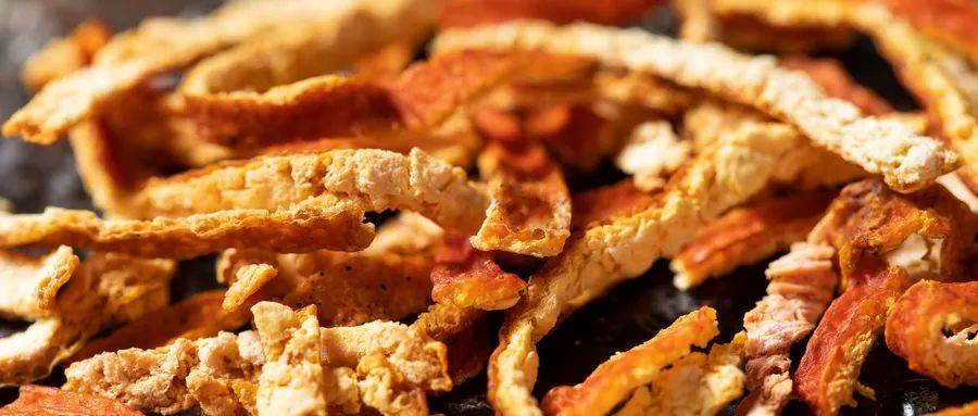 需要注意的是,用來泡水的陳皮可不是隨便一塊橘子皮放在暖氣上烤一烤就行的,是需要專門炮制的!