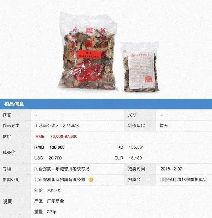 這可不是在開玩笑!在2018年北京保利秋季拍賣會,一款48年歷史的211克陳皮就被拍出了13.