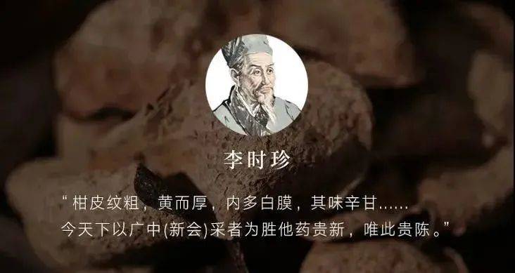 《本草綱目》記載「今天下多以廣中來者為勝」,「廣中」就是現在的廣東新會地區,新會人專門種柑取皮已有700多年的歷史。