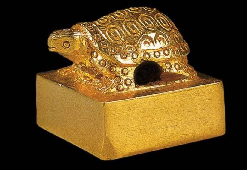 根據史料記載,這種金龜印盛行于漢代,是漢朝皇帝喜歡給同姓王侯的賞賜,劉荊雖然為人處世不咋地,好歹也是個正經王爺,有一枚金龜印并不奇怪。