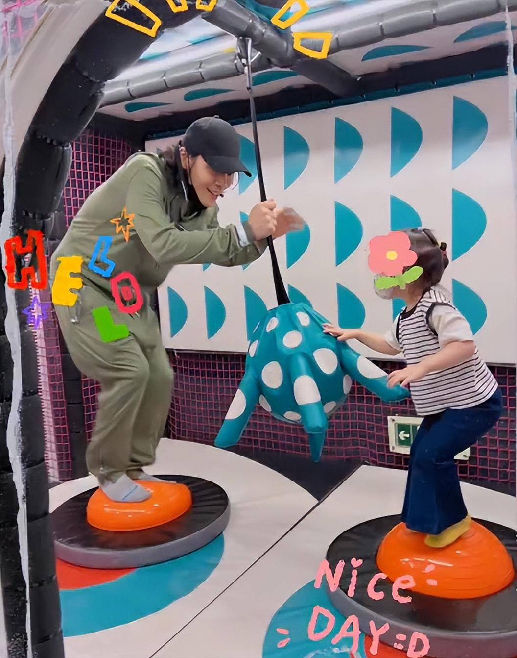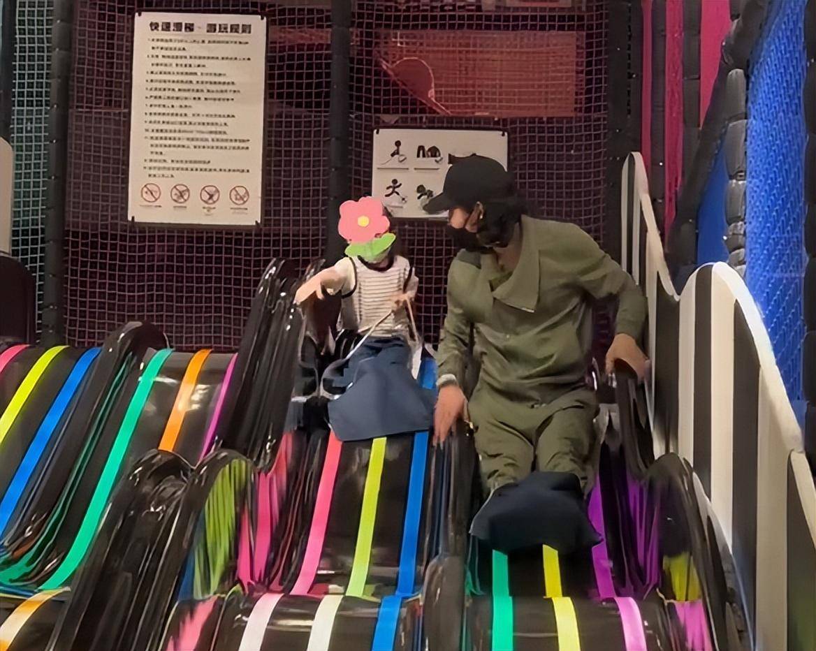陪着女儿玩滑梯的向佐,时不时还回头察看女儿情况,时时刻刻关注女儿一举一动,带娃十分细心。