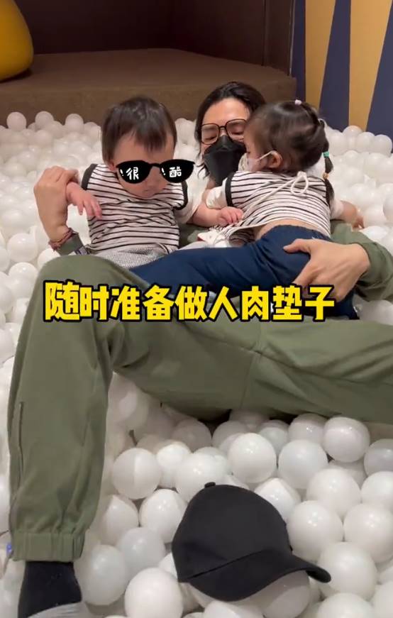 下图中,带着儿女在海洋球中玩耍的向佐不仅充当人肉垫子,倒下去的他还不忘一手护着一个孩子,有爸爸在身边保护,小奶皇和弟弟龙眼很是有安全感,姐弟两个 不哭不闹,玩得十分尽兴。