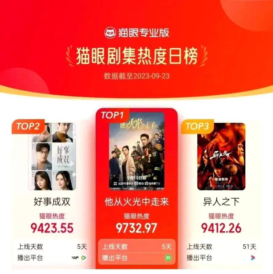 由黃景瑜、張婧儀、唐曉天、張凌赫等人主演的電視劇《他從火光中走來》正熱播,每周二到周六更新,更新日一天兩集。上映5天站內熱度破8500,熱榜第一。