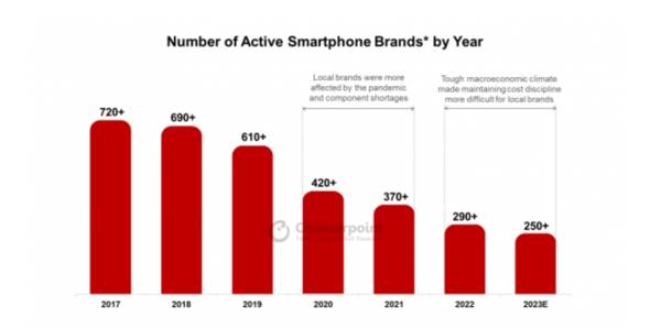 Counterpoint Research稱,在這個過程中,各國的本土品牌成為了重災區。例如,中國的美圖、金立和酷派,印度的Micromax、Intex和Karbonn,韓國的LG,中東和非洲的InnJoo和Xtouch,日本的京瓷和NEC等等都結束了智慧型手機業務。分析師稱,小米、OPPO、vivo等中國品牌的崛起加速了小品牌的衰落。