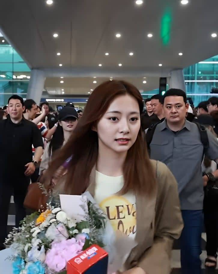 值得一提的是,子瑜走着走着手上东西也越来越多,手上抱着一束疑似是粉丝送上的鲜花,仔细一看,还能发现一盒熟悉的红色包装零食,原来是台湾人从小吃到大的「义美小泡芙」,让粉丝们看了会心一笑。