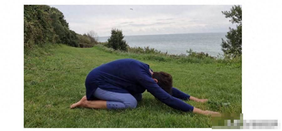 腳跟向后坐著跪著,雙手放在面前的地上。 現在用你的手掌把地板從你身邊移開。 注意你的身體是如何吸氣和下背部伸展的。花點時間暫停呼吸,直到你的身體有嘆氣的沖動。