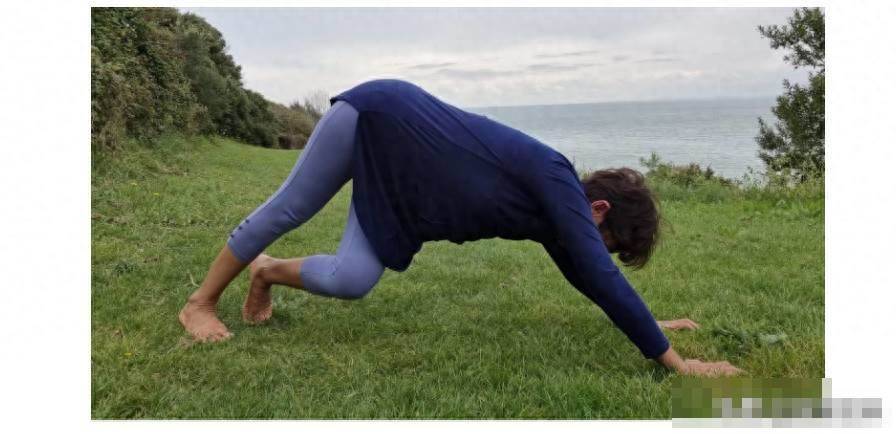 從桌面姿勢開始。 把你的腳趾蜷縮在下面,把地板推開,當尾骨伸到空中時,讓呼吸像全身打哈欠一樣到達。 停下來放松一下,探索一下感覺有點僵硬的地方。