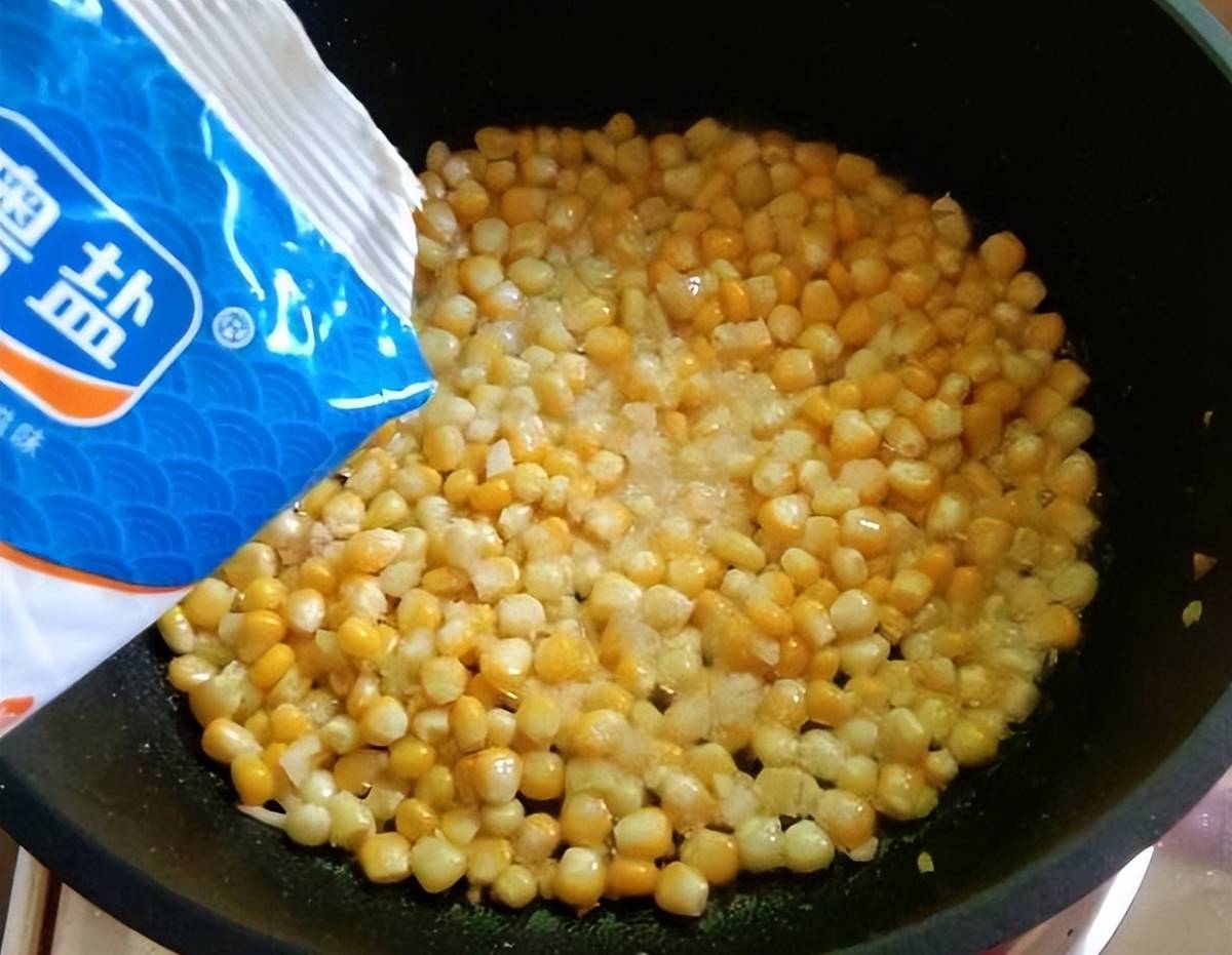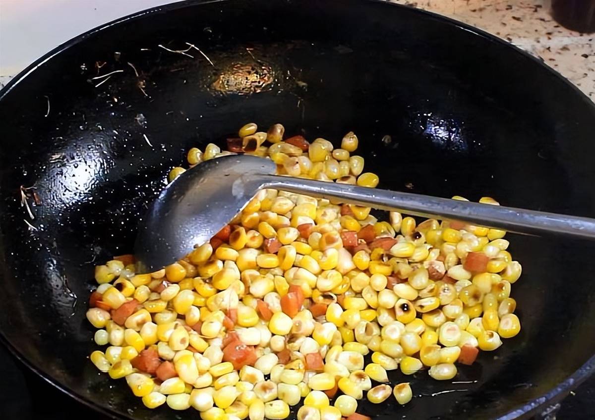 4. 加入玉米段翻炒,炒至玉米變軟。