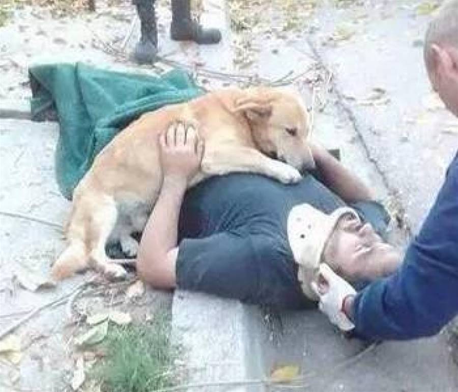狗狗一直守在主人身边,焦急注视着救护人员对主人的救治。幸运的是经过紧急治疗,男子恢复了意识看着身旁焦急守候的狗狗,用手轻轻抚摸着它。