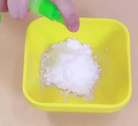 3、再往容器中加入少量的食用鹽,最后在容器中噴入花露水,食鹽和花露水的比例看著放就好了;