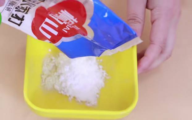 2、往容器中加入食用小蘇打,小蘇打可以加多一點,可以是肥皂的1.5倍;