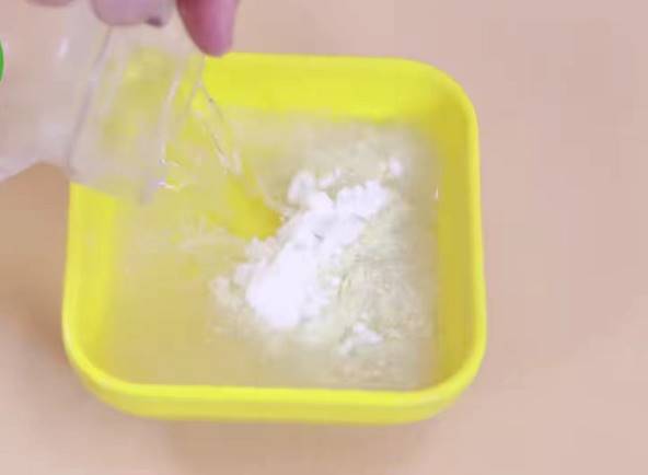 4、最后往容器中放入自來水,可根據自己的需求量來放。放完自來水后用手或者筷子攪拌均勻就可以放在一邊備用啦。