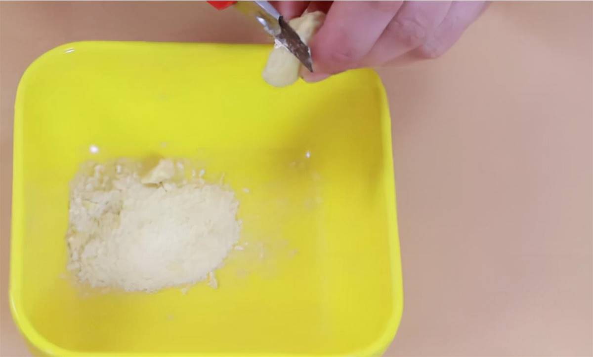 1、準備一個小容器,把家里準備丟棄的肥皂頭拿出來,用刀刮下來一些粉末進入小容器;