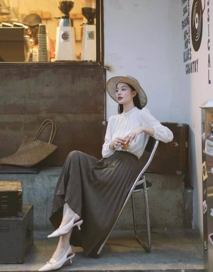 云朵衫也不需要太浮夸的款式,一件白色就足夠,滿足黑白對比的層次感,黑底白點,又能和上衣起到顏色呼應,復古又不失優雅,最關鍵是不挑人!