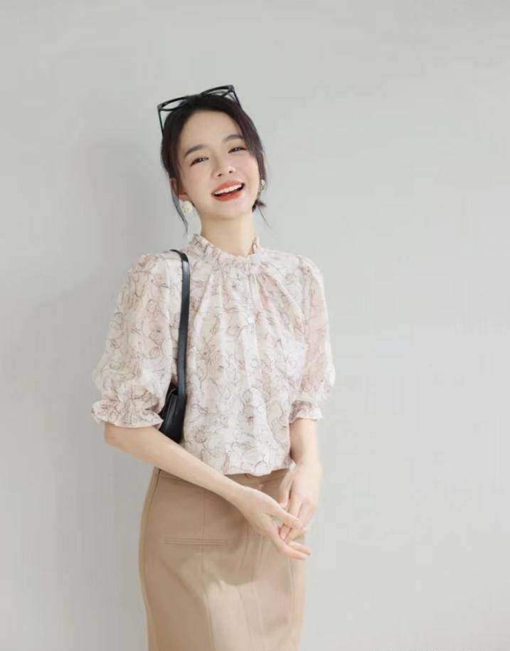 春夏的浪漫氛圍一是由濃郁的色彩組成,二是由具有豐富印花、碎花的單品,所以想要想的穿搭豐富,大家可以考慮入手印花的云朵衫。不過不要像碎花那種太密集的團,而是深淺合并不明朗的暈染印花。