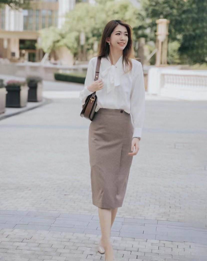 對我來說云朵衫真的屬于那種看似簡單,但是穿上能非常顯氣質的單品沒有之一,并且不用學習太多的搭配技巧,像王鷗就喜歡用一件相同風格且看起來相似設計的膝下裙組合,極簡但很有辨識度,用來作通勤穿搭也絲毫不受影響。