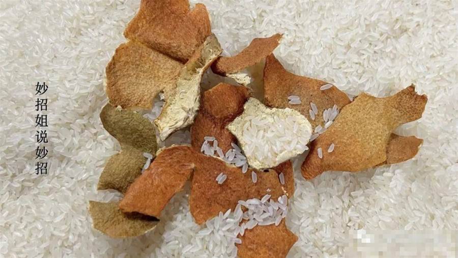 可以將橘子皮放在窗台上晾干,然后在使用時,只需要將干燥的橘皮放入大米中即可。