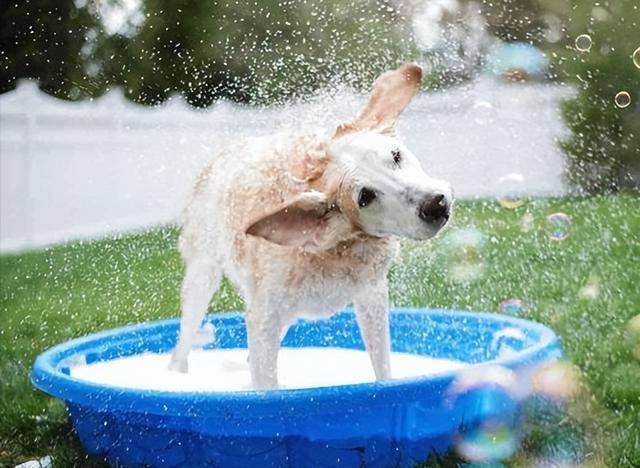 这时候狗狗甩身体是很正常的,因为狗狗正在快速的把自己毛发上的水抖掉,