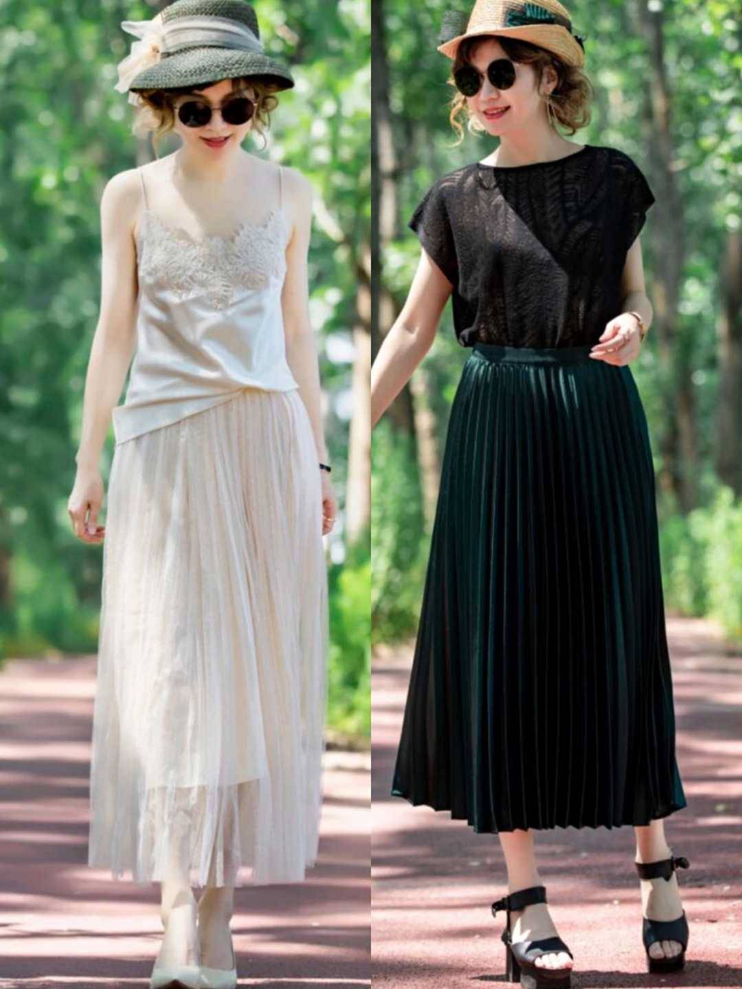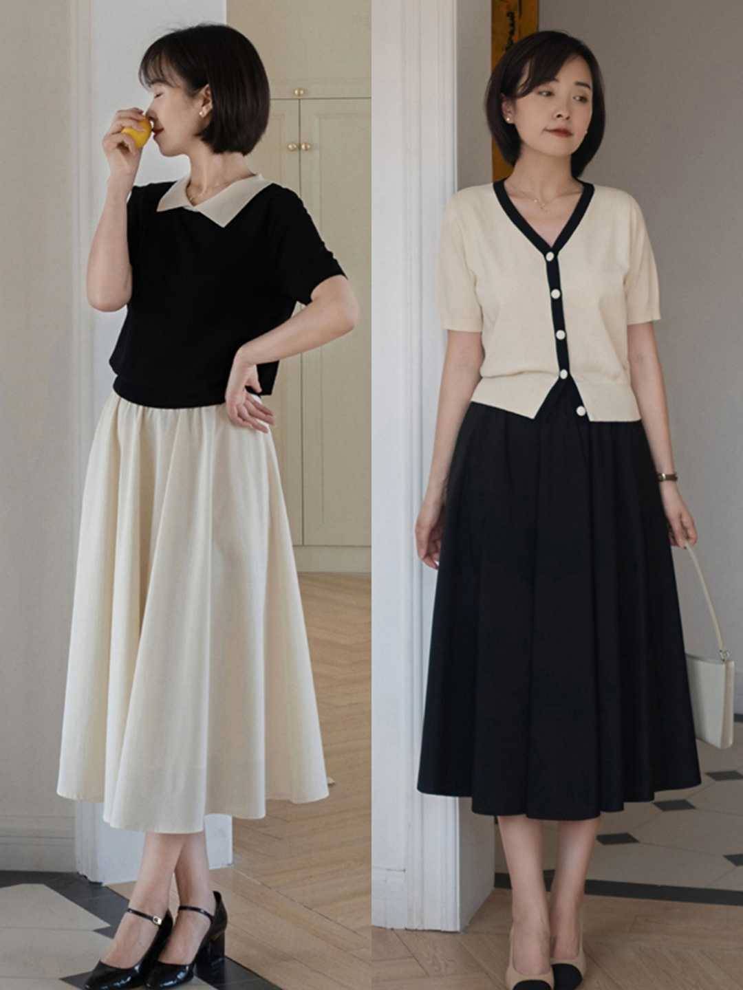 成為一個氣質女人,衣櫥中一定要有一條半身裙,像這些女性朋友們選擇這種經典的黑白色裙裝,簡單又低調,然后在上半身搭配同色系的上衣,能夠符合我們前面所講到的同色系穿搭,看上去非常的高級,優雅低調的色彩也顯得很有氣質。