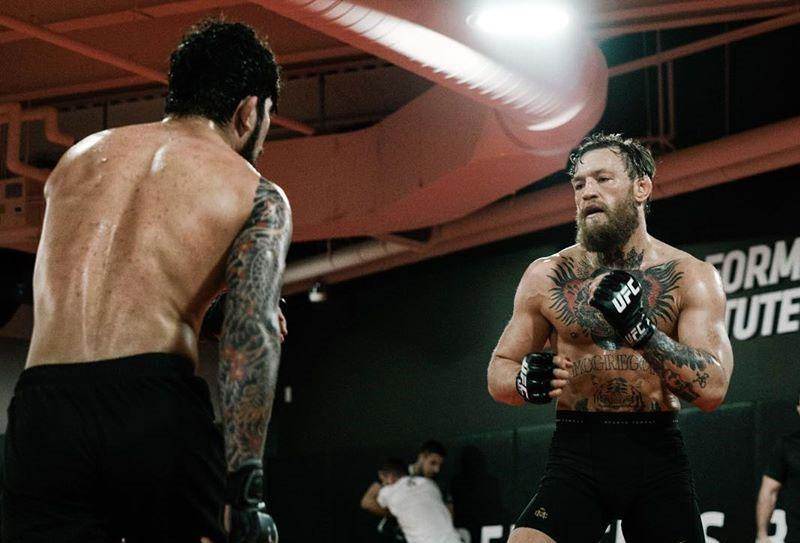 麥格雷戈通常會和體能教練一起訓練。還有專業實戰陪練,幫助他提高實戰技巧,使他的肌肉,骨骼和結締組織變得結實,以應對MMA的嚴酷考驗。麥格雷戈會和體重比自己大得多的陪練進行實戰演練,流汗流血都是常有的事,并非只在比賽中才有。