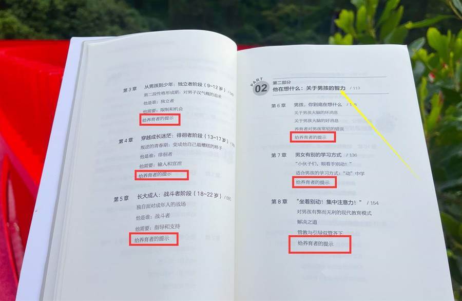 在每個章節的后面,有給養育者的提示,幫助父母更好的針對性解決,男孩成長中的難題,給養育者吃下一顆「定心丸」。