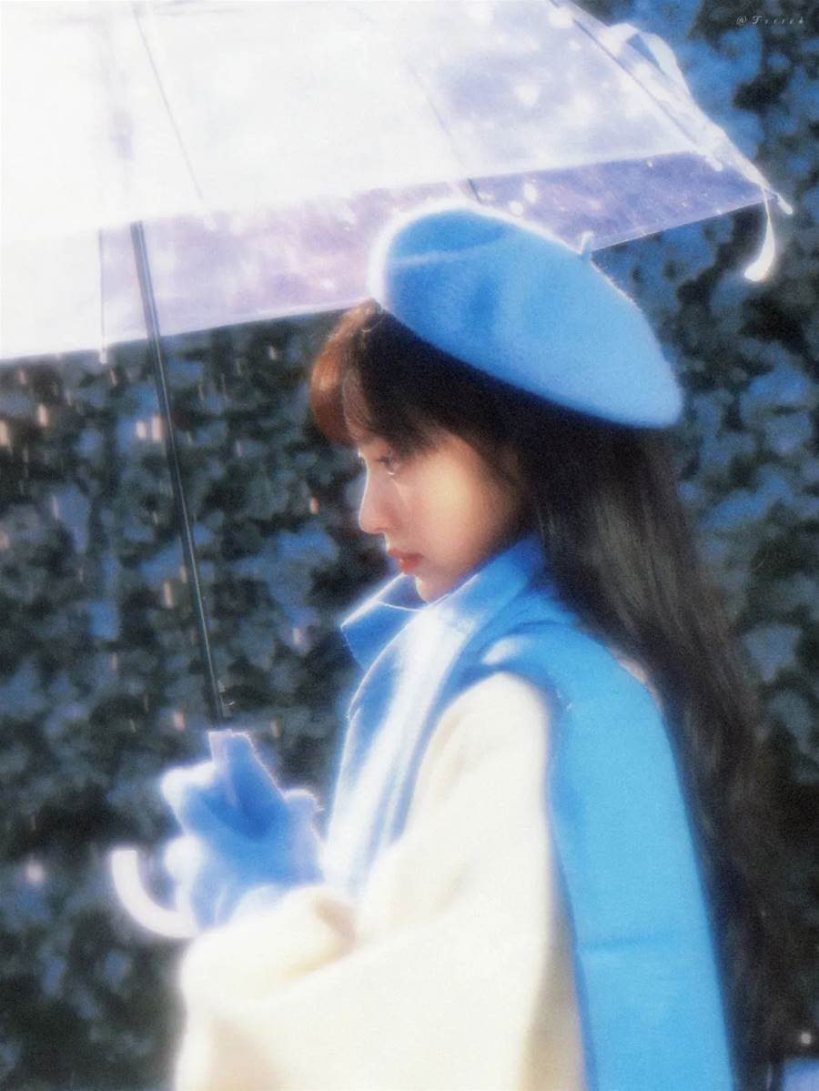 撐著傘在雪中轉圈,她的笑容如春日暖陽般明媚。那自由自在、無憂無慮的狀態,讓人感受到了生命的美好和活力。田曦薇的甜美、鬼馬和酷颯在這張照片中完美融合,仿佛是一個充滿故事和情感的女孩。