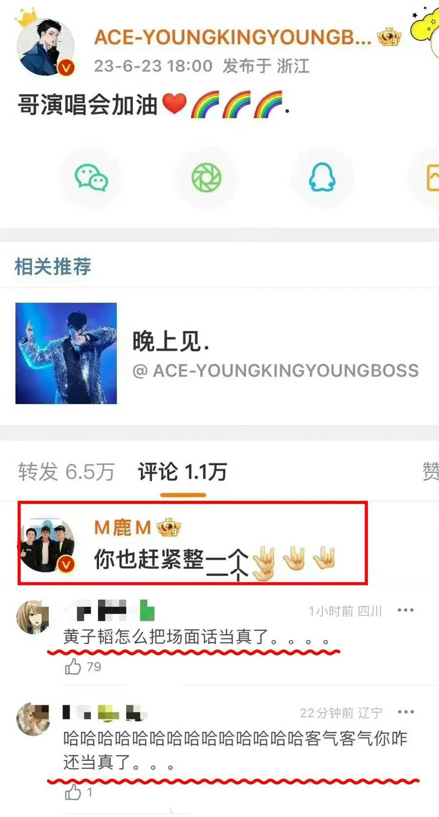 有網友開玩笑說,黃子韜的尷尬境地都是鹿晗造成的。在今年上半年,鹿晗在全國進行了個人演唱會巡演,上座率相當可觀,現場還出現了全場大合唱的壯觀。這可把黃子韜羨慕壞了,還給鹿晗送去了花籃,鹿晗跟黃子韜說:「你也趕緊整一個」,黃子韜就把鹿晗的話當真了。