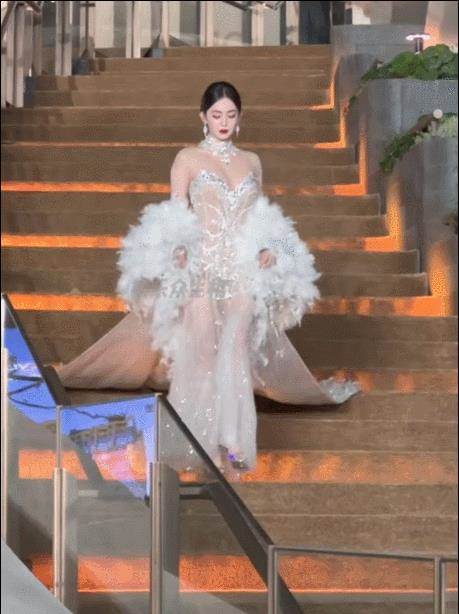 11月份的vogue紅毯,她身著一襲羽毛裙從台階上款款而下,美得像從南天門走出來的仙女。