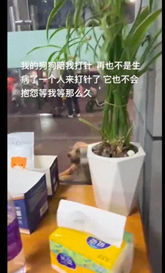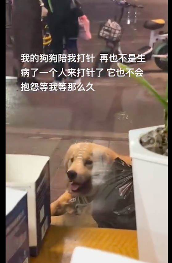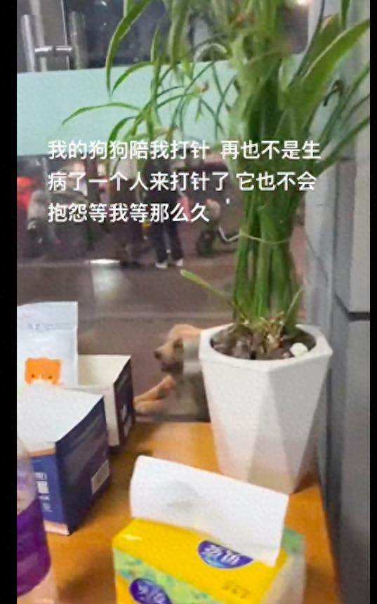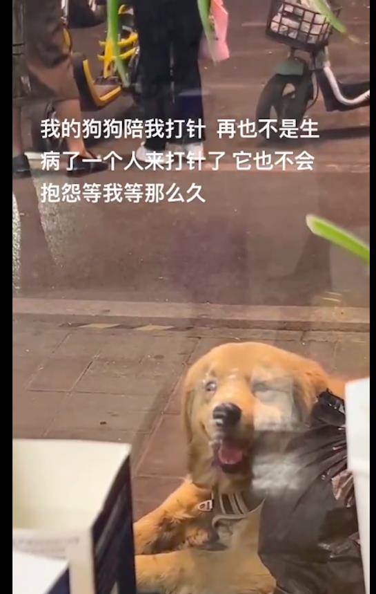 1月7日在廣東東莞,有一位女生養了只金毛。女生是一個人在這邊工作的,平時做什麼事情都是一個人。這一天女生生病了,要到附近的社康里打點滴。然后狗狗也要陪著一起過來,不過診所并不讓狗狗進來,所以就把狗狗拴在了外面,自己坐在里面可以看到它。