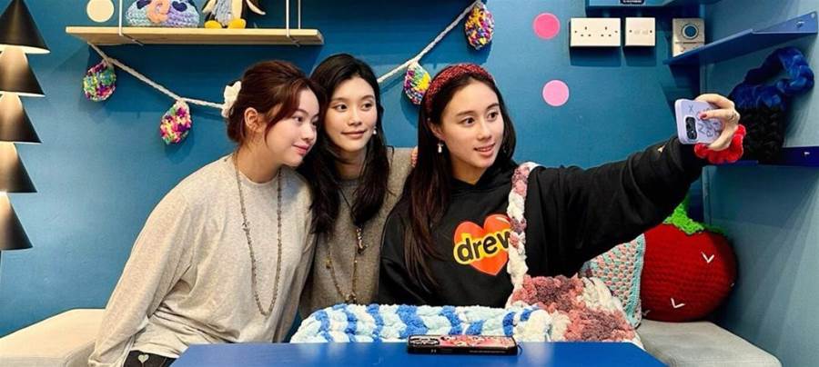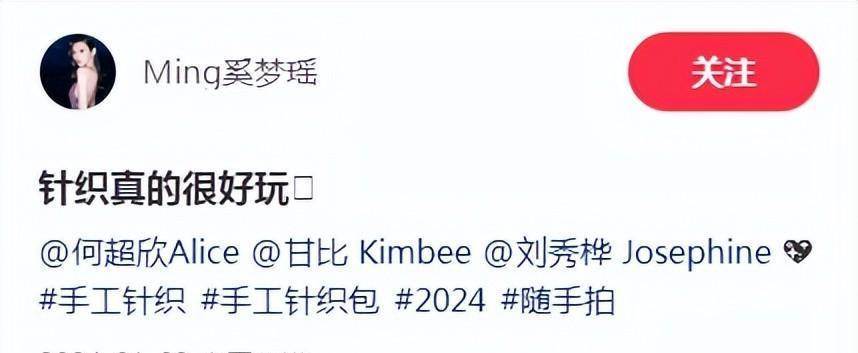 新年之后,奚夢瑤在個人社交平台上曬出和甘比聚會的照片,并配文:「針織真的很好玩」。她帶著小姑子何超欣到甘比的手工針織店打卡,為甘比宣傳手工作品,何超欣緊跟著上傳合體照,給足了甘比面子。