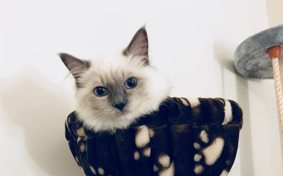 外表特征:布偶貓一般以白底毛色為主,臉部帶一點灰色,屬于長毛貓家族成員。因有著藍眼睛及高貴外表,經常成為貓界模特兒。