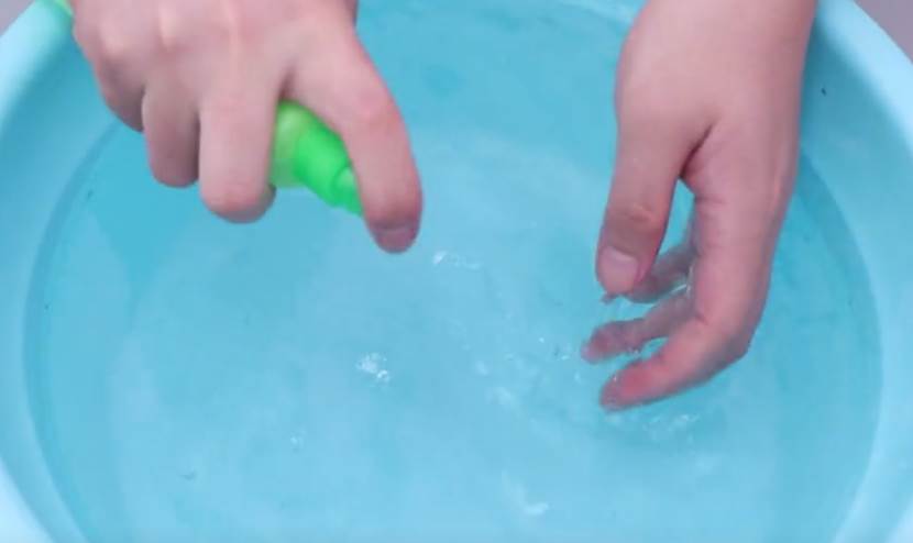 第一個小妙招,準備一盆清水,準備一條干毛巾,給它放到清水里面,加入適量的花露水,花露水我們可以多加一些,然后將它攪拌均勻,讓毛巾充分的浸濕,浸濕好之后擰至半成干就可以拿去利用啦。