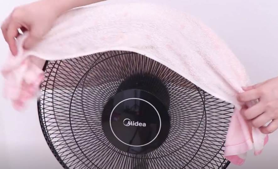 直接將半干半濕的毛巾搭在電風扇上,一半搭在前面,另一半搭在后面,這樣在吹電風扇的時候,你會感覺吹出來風非常涼爽。