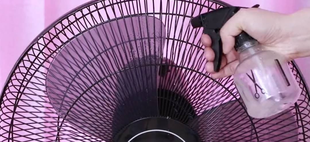 直接將調制好的酒精花露水的溶液,噴灑在扇葉上,噴灑一點點,接下來,我們吹電風扇就會感覺非常的舒服,因為酒精可以快速的揮發,讓花露水的氣味揮發出來,氣味更加的清香,同時酒精快速的揮發還可以帶走周圍的熱量,這樣吹出來電風扇更加涼爽。