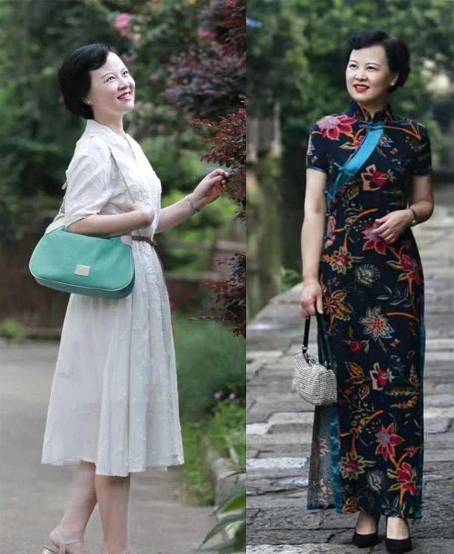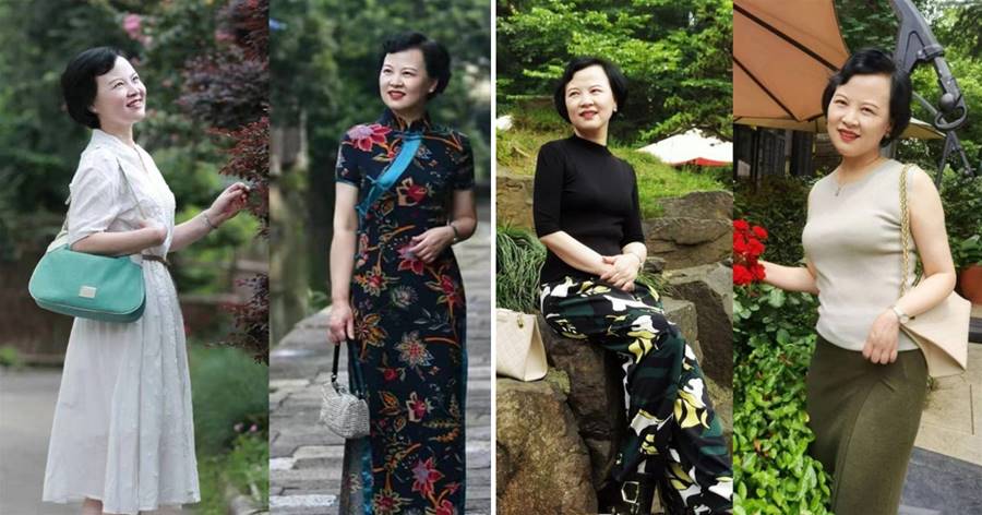 也可以像右圖中的她一樣,借助自帶歲月感的古典印花旗袍,襯托出50歲后女人的時尚優雅魅力。