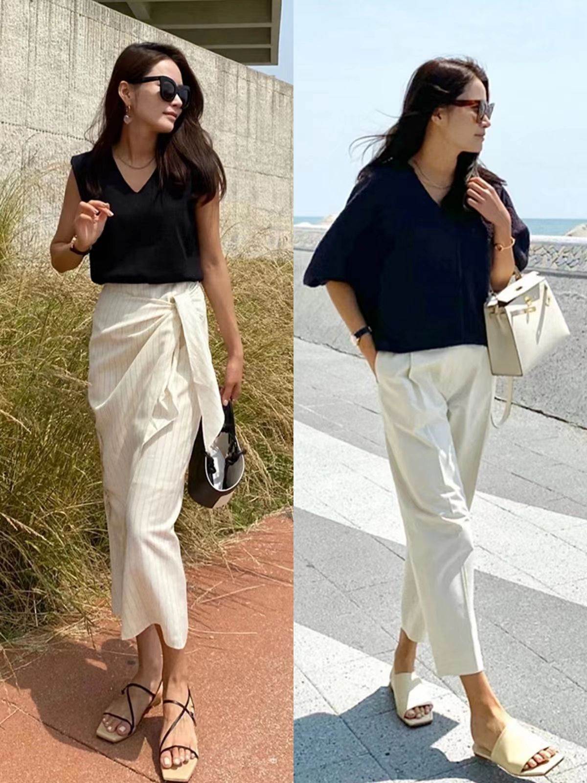 白色、黑色或者與膚色相近的大地色系方頭涼拖都蠻適合中年女人,穿在腳上透氣又大方。