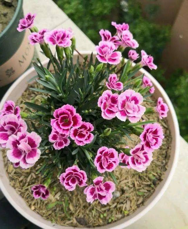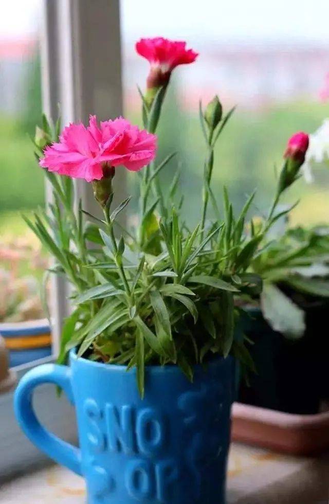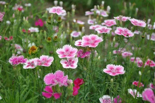 它的花色也很豐富,單瓣的就是石竹花,重瓣的石竹花就是香石竹,也就是康乃馨,它是非常喜歡充足的光照的花卉植物,在夏季秋季都可以不斷開花。