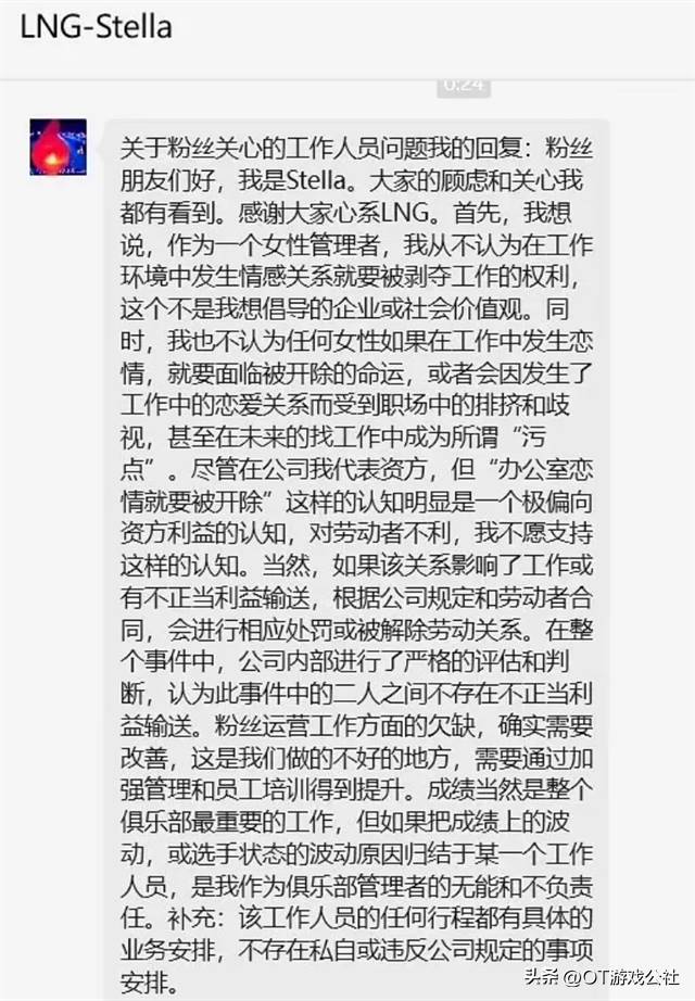 我覺得LNG戰隊這些事確實做得不好,允許選手、工作人員戀愛沒什麼,但他們給女運營放假、不找新人直接擺爛這種做法,很不尊重粉絲。
