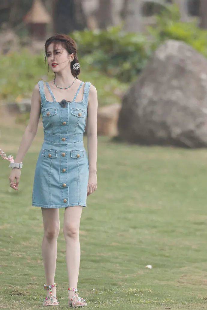 藍色背帶牛仔裙青春活力顯氣質。這款穿搭的特點就是百搭有活力,藍色的主色調給人一種甜美的感覺。這款穿搭在設計上采取無袖、方領、背帶、修身的方式,在白鹿身上特別有少女感。在穿搭上既適合單穿,也能搭配其他單品。無袖和方領的設計,既曬出鎖骨又給人一種端莊優雅的感覺。修身的版型,又將白鹿的身材優勢展現出來,高腰的設計既有修飾身材的作用,又顯身材曲線。