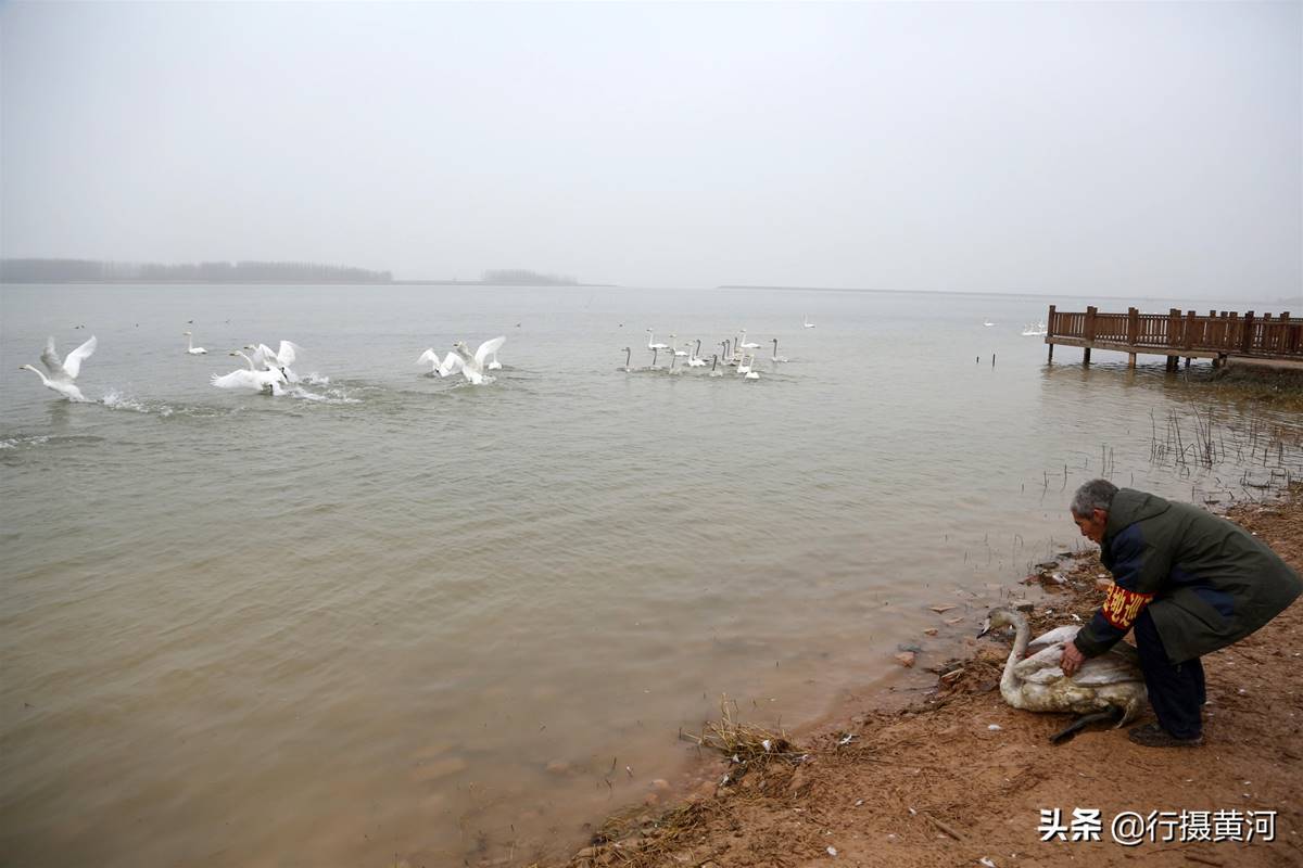 這隻白天鵝是從3000多公裡以外的西伯利亞飛到這裡越冬的,大概是在飛行途中翅膀不幸受傷了,