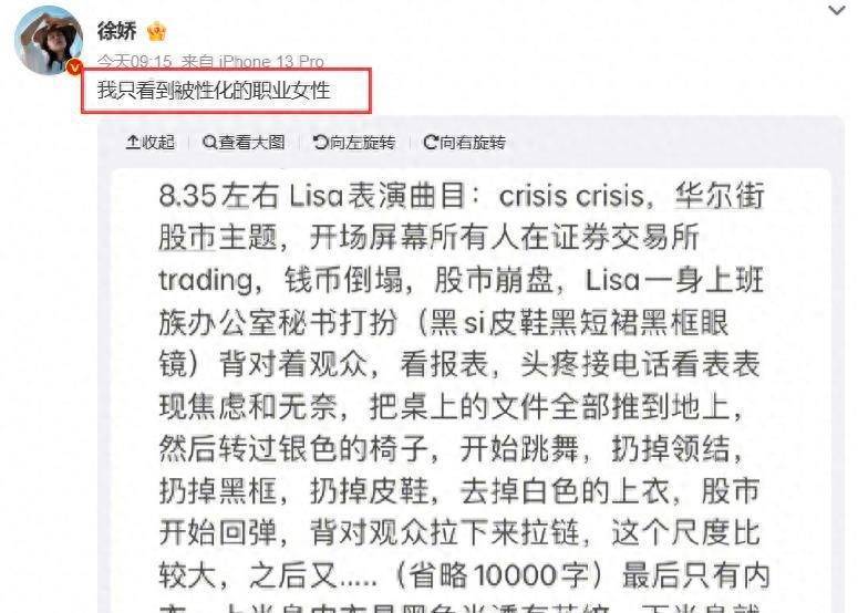 Baby和張嘉倪甚至還不如年輕的徐嬌那麼透明。她對瘋馬秀的評價一針見血,「我只看到性感化的職業女性」!