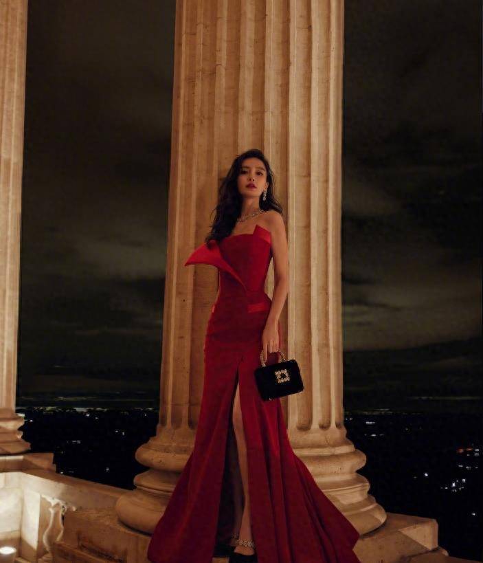 Baby 在巴黎也大出風頭。夜晚的她身穿一襲紅色長裙,搭配大波浪的長發和火紅色的嘴唇,讓她看起來更加迷人。