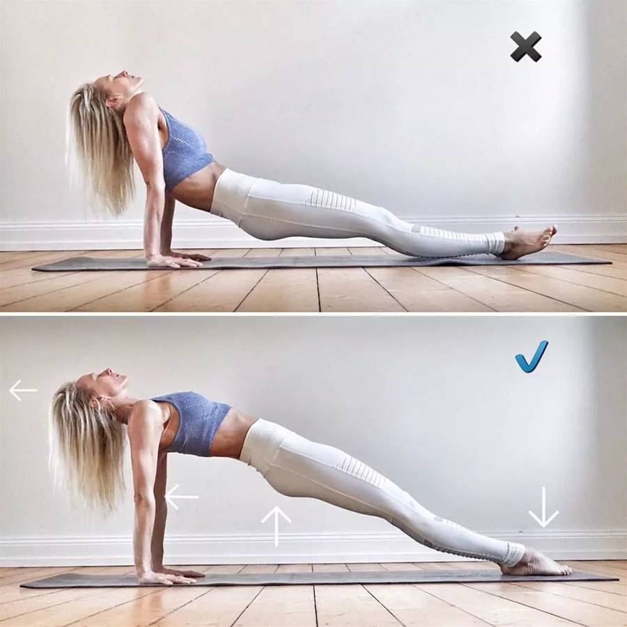 改善:核心用力,肩膀在手腕的正上方,腳趾用力下壓發力,臀部向上抬,胸腔打開。