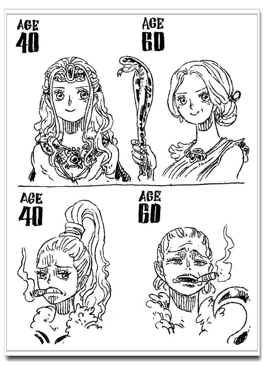 就拿羅賓來舉例,尾田之前公布的正常版40歲羅賓是感嘆年輕真好,60歲是你要跟我一起去調查嗎?妥妥的只是文藝女青年,老學者,也符合我們對羅賓的一貫認知。