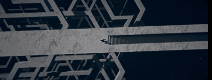 主角面對階梯,前方是無盡的黑暗。