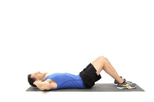 躺在地上,双手放在耳旁,两腿弯曲,双脚并拢,上身向前抬起,同时向膝盖方向弯曲,感受腹部肌肉的收紧,然后慢慢回到原位。动作进行15次,重复4组。
